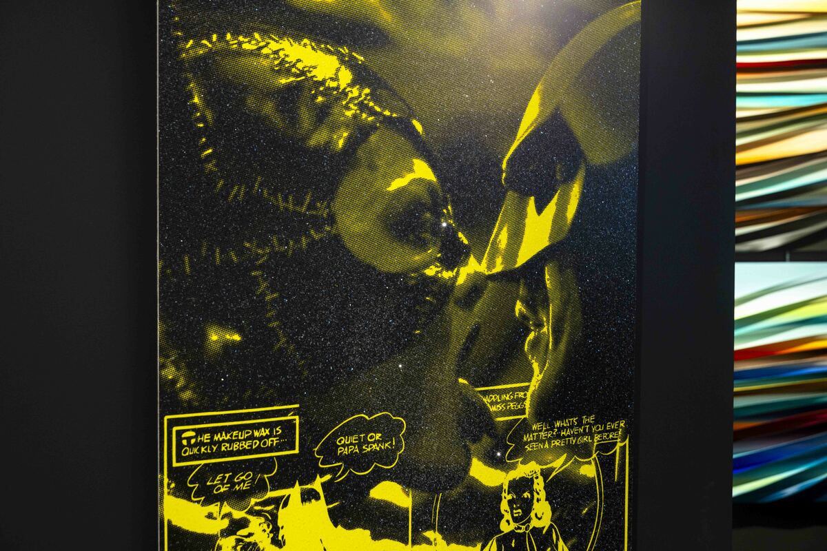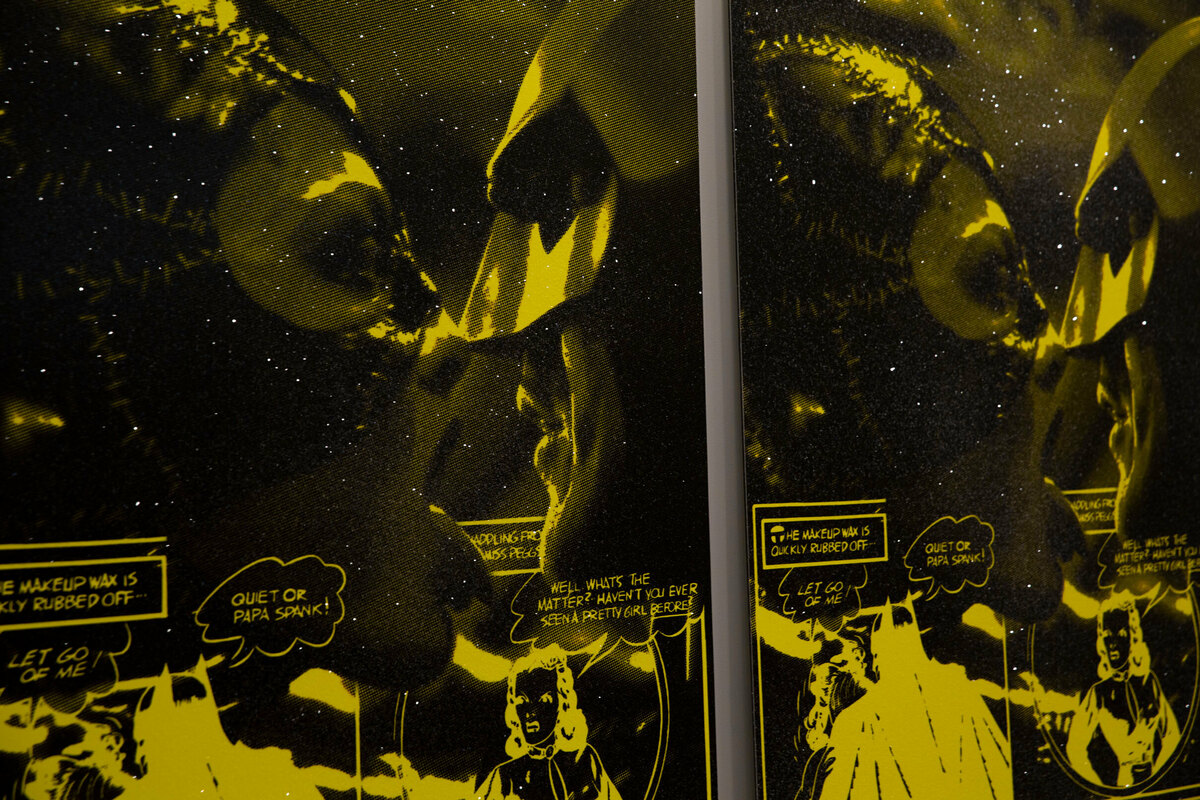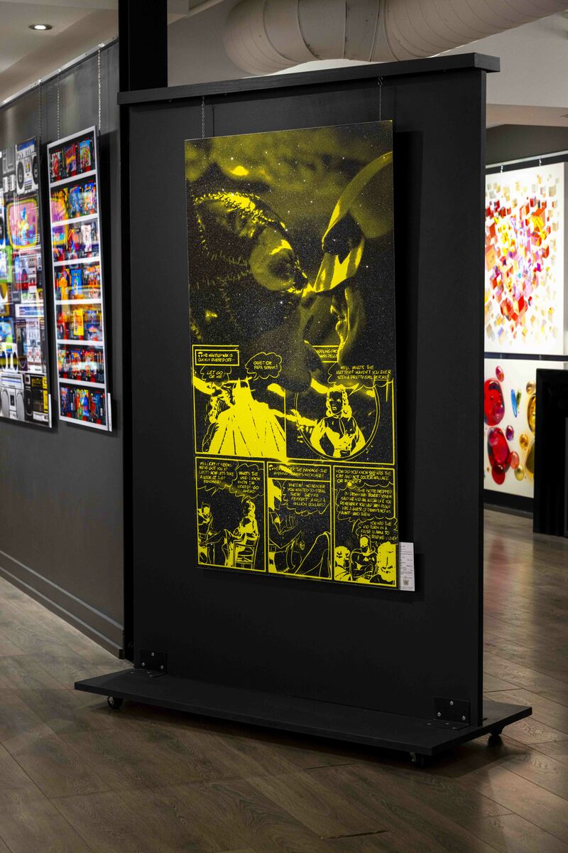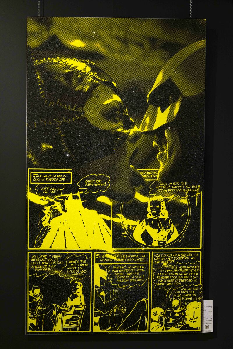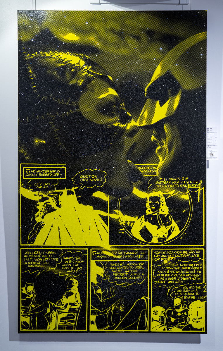 Meow! This sensual piece radiates gothic appeal as Catwoman purrs up next to the Dark Knight from Tim Burton's iconic 'Batman' (1989). The iconic yellow and black colorway also offers an high-end finished product, regardless of materials; wether mounted to acrylic, printed on fine art paper or embellished by hand, this contemporary piece of art will please both fans and casual viewers alike.