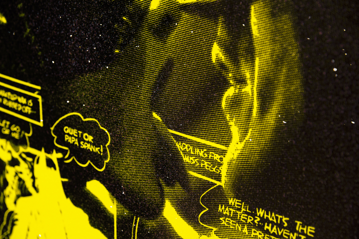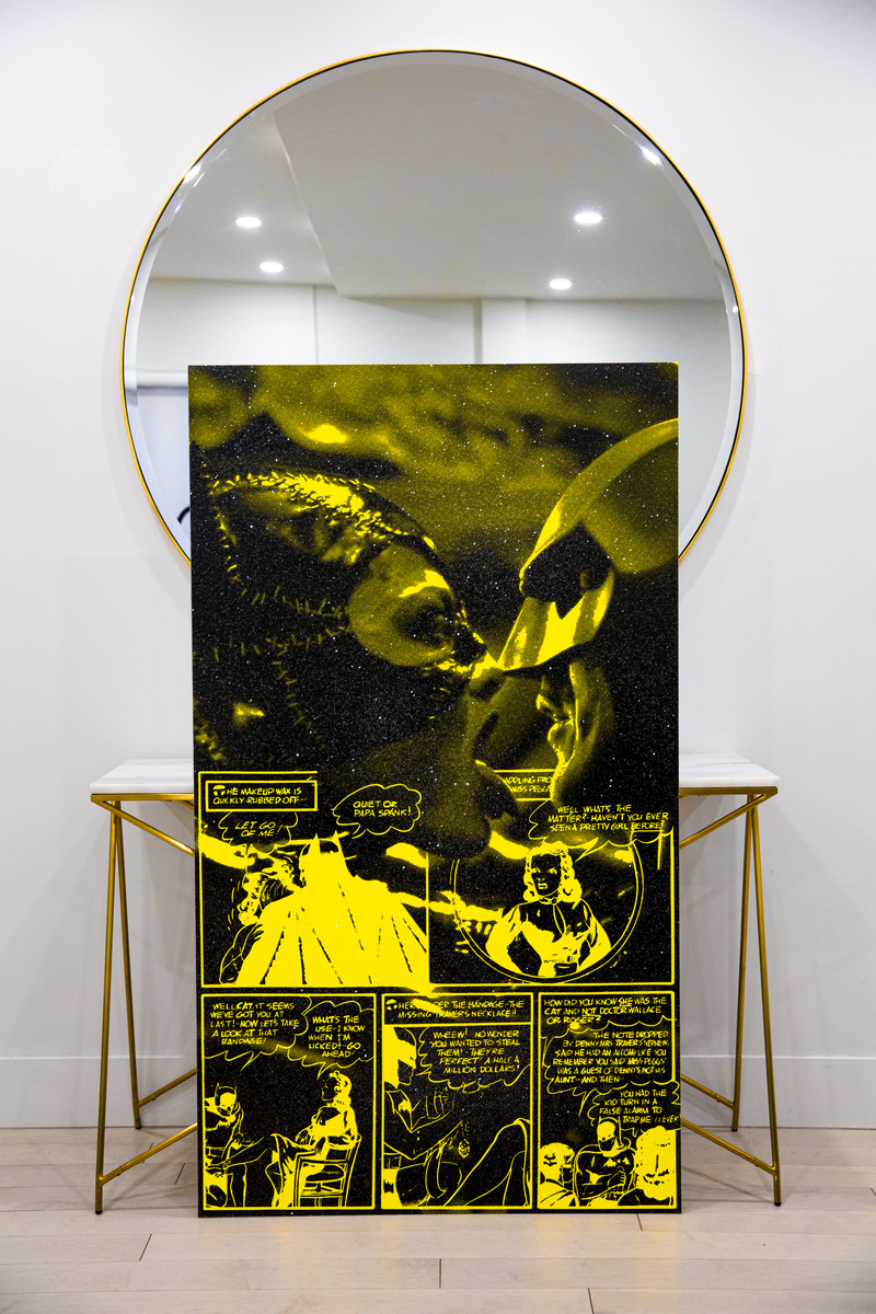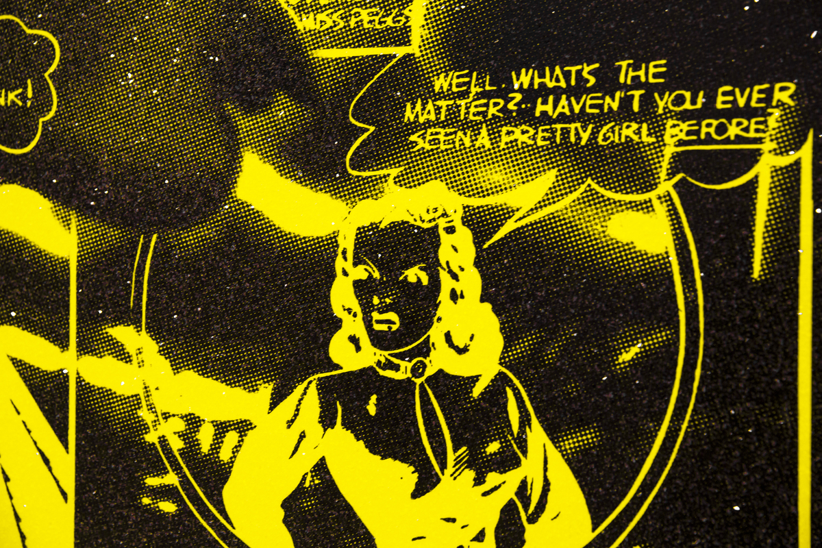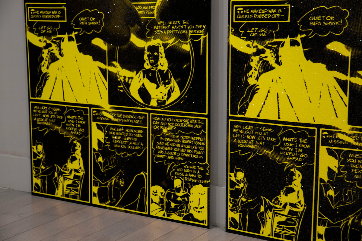 Meow! This sensual piece radiates gothic appeal as Catwoman purrs up next to the Dark Knight from Tim Burton's iconic 'Batman' (1989). The iconic yellow and black colorway also offers an high-end finished product, regardless of materials; wether mounted to acrylic, printed on fine art paper or embellished by hand, this contemporary piece of art will please both fans and casual viewers alike.