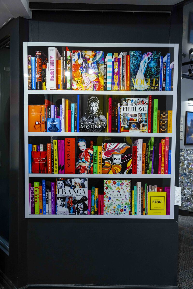 Fashion Bookscape IV is a vibrant visual statement piece that transforms the world of haute couture into a collectible artwork. Meticulously arranged across four shelves, this piece brings together an eclectic mix of iconic fashion monographs - Alexander McQueen, Valentino, Chanel, Dior, Pucci, Gucci, Fendi, and more - capturing the bold colors, graphic typography, and cultural importance of each title. The result is a striking celebration of fashion’s history and creativity, where books become both design objects and symbols of style. With its rich palette and layered detail, this artwork speaks to the collector’s passion for fashion as both an art form and a cultural archive, making it an elegant yet dynamic addition to any space.