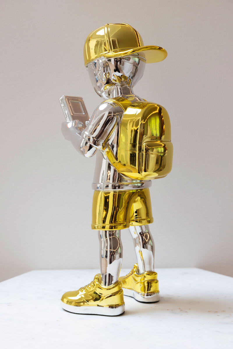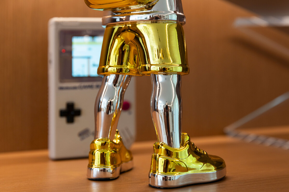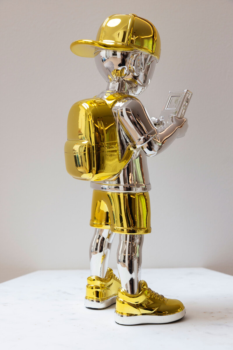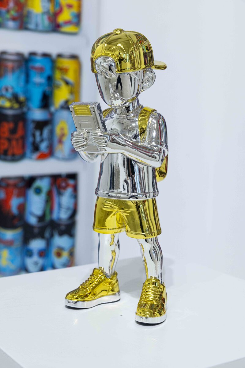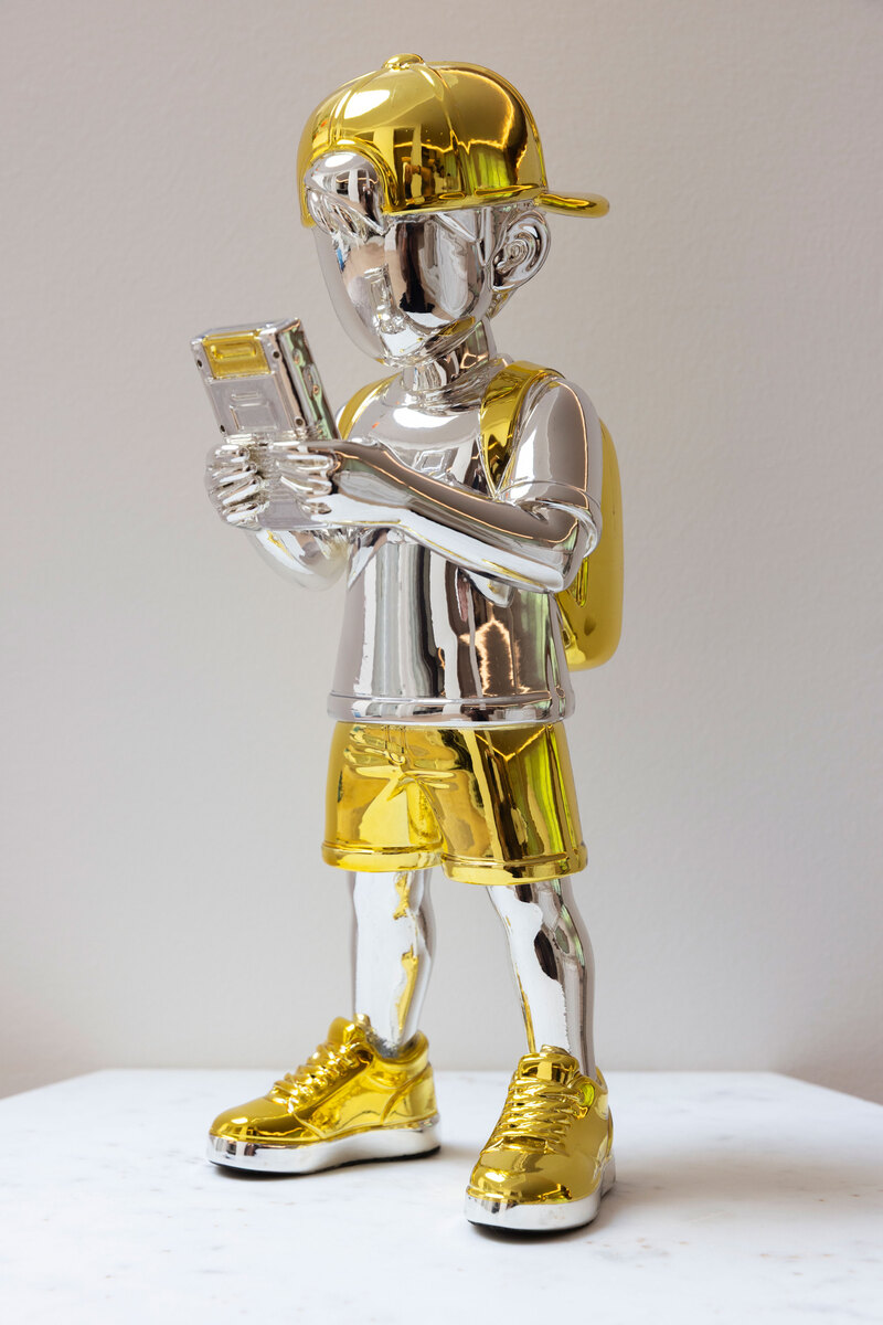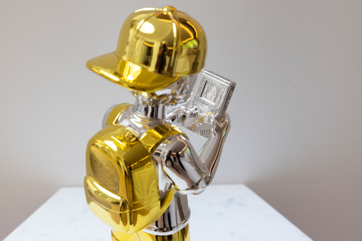 Before the world fit in your pocket, there was a device capable of transporting you to infinite worlds of possibility. You stared at it for hours, elbows braced and thumbs at the ready. Eyes locked. Time paused. The smell of mac & cheese filled the air and all that mattered was the next boss battle. Sometimes it worked. Sometimes you had to blow into the cartridge like a sacred ritual we all instinctively knew without being taught. You weren’t just playing. You were becoming. A heroic plumber. A daring pilot. A pixelated knight. And when the batteries died for the last time, so did a little piece of the magic — until now. This sculpture isn’t a toy. It’s a memory made solid. A monument to the first time you disappeared into wonder.