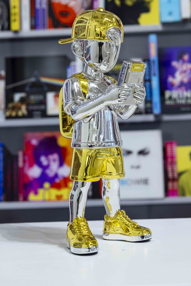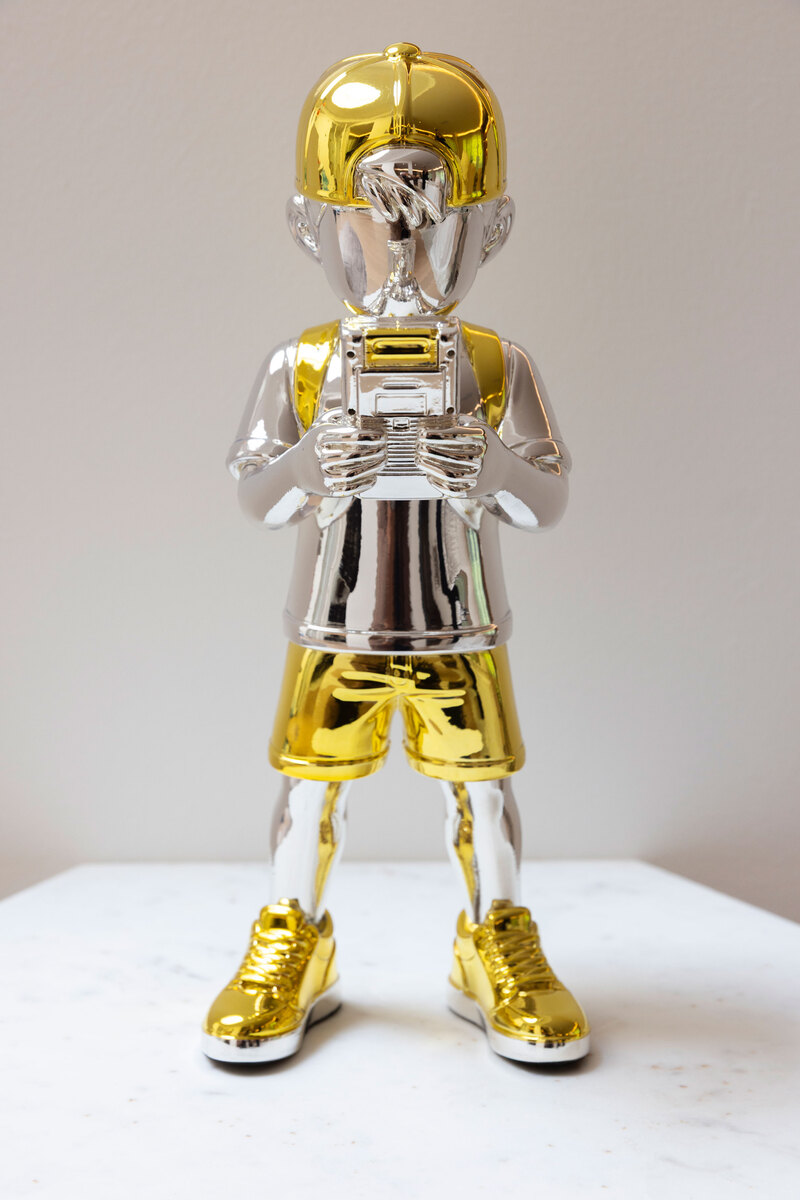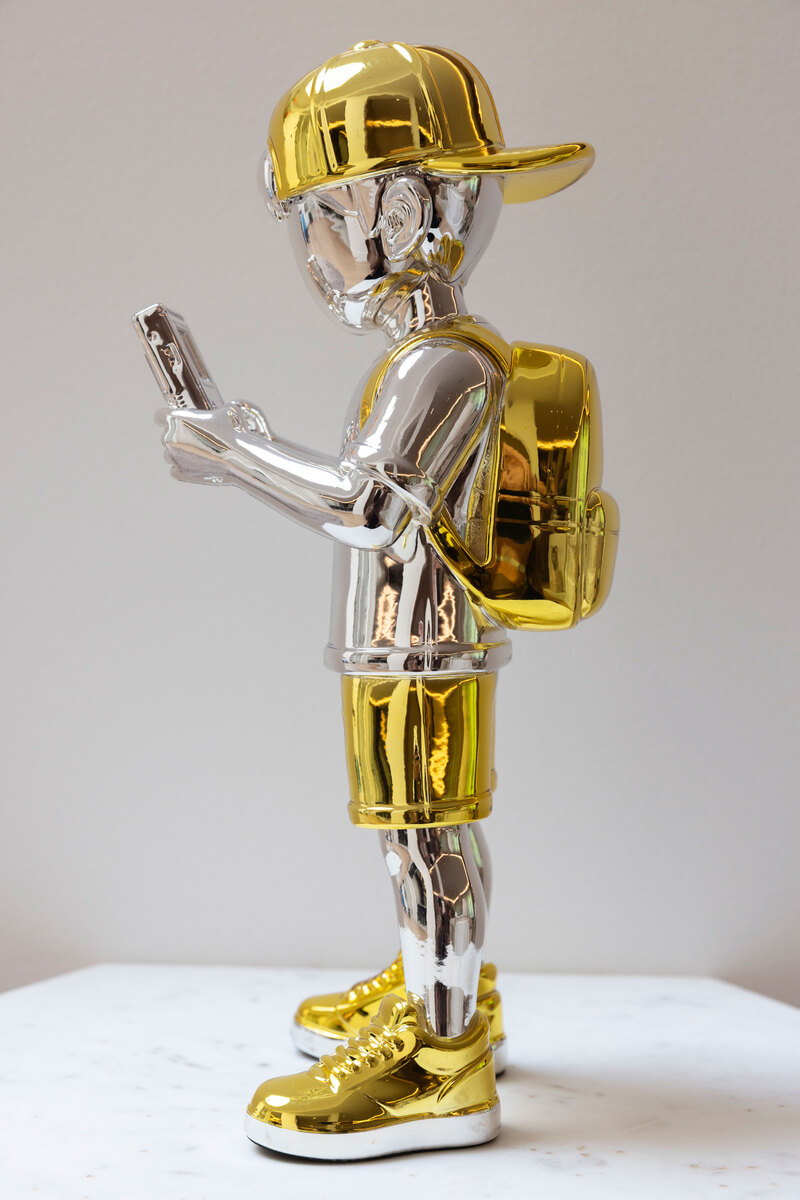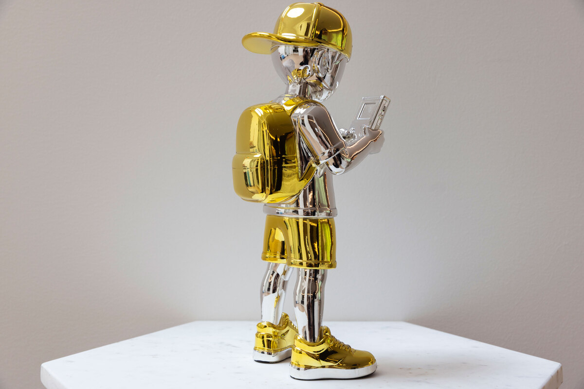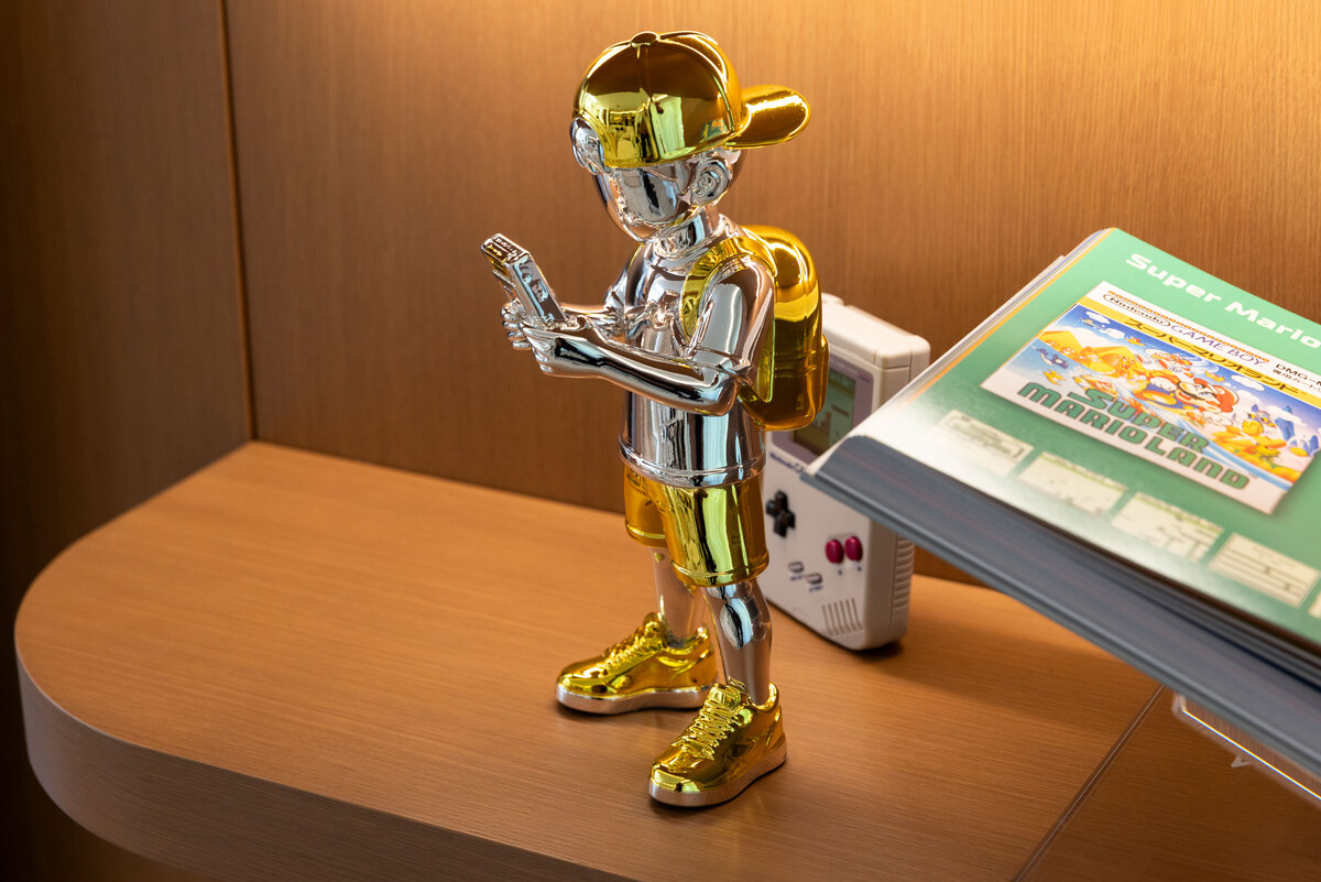 Before the world fit in your pocket, there was a device capable of transporting you to infinite worlds of possibility. You stared at it for hours, elbows braced and thumbs at the ready. Eyes locked. Time paused. The smell of mac & cheese filled the air and all that mattered was the next boss battle. Sometimes it worked. Sometimes you had to blow into the cartridge like a sacred ritual we all instinctively knew without being taught. You weren’t just playing. You were becoming. A heroic plumber. A daring pilot. A pixelated knight. And when the batteries died for the last time, so did a little piece of the magic — until now. This sculpture isn’t a toy. It’s a memory made solid. A monument to the first time you disappeared into wonder.