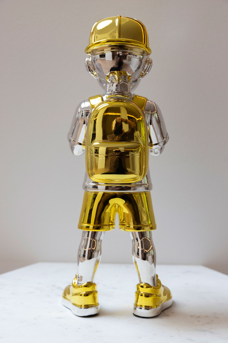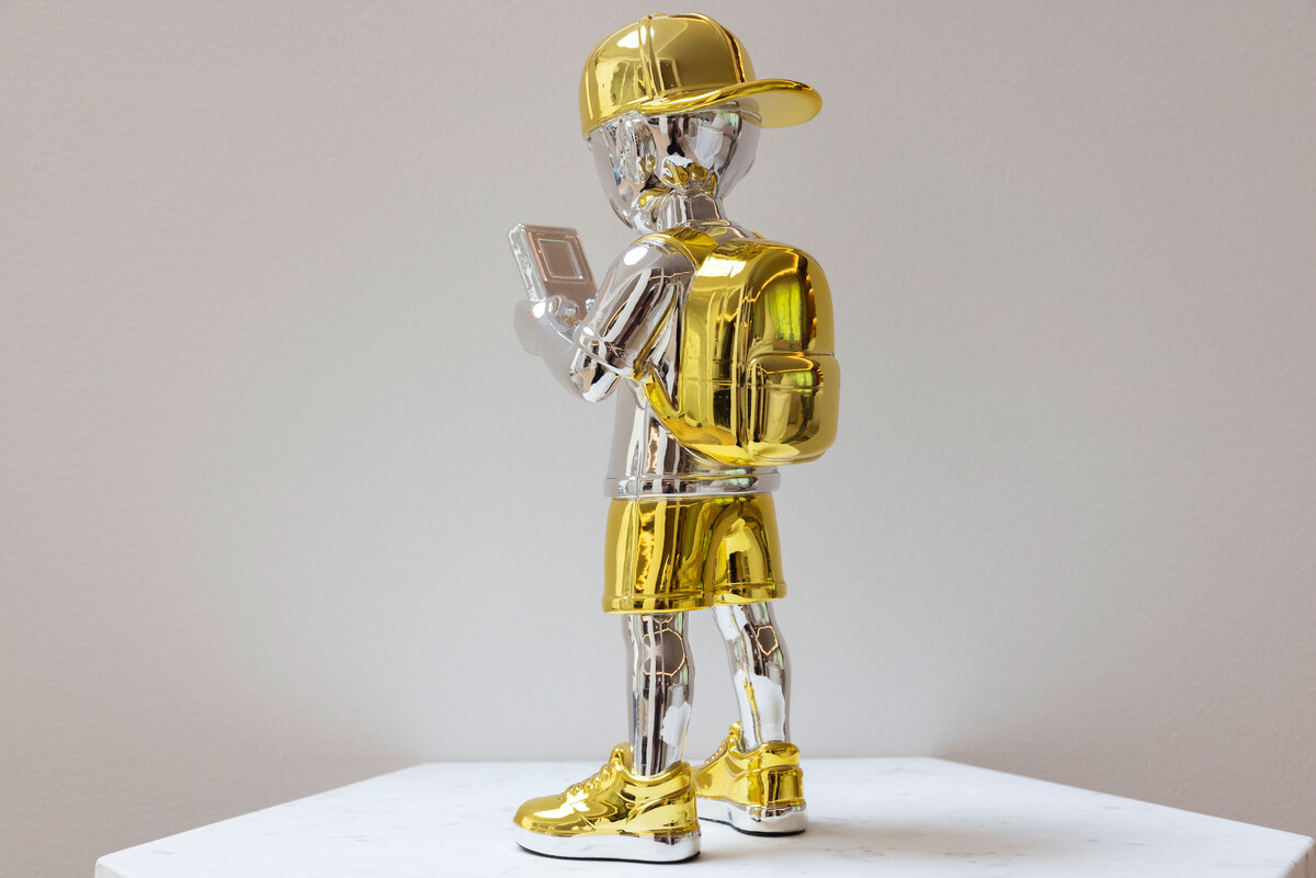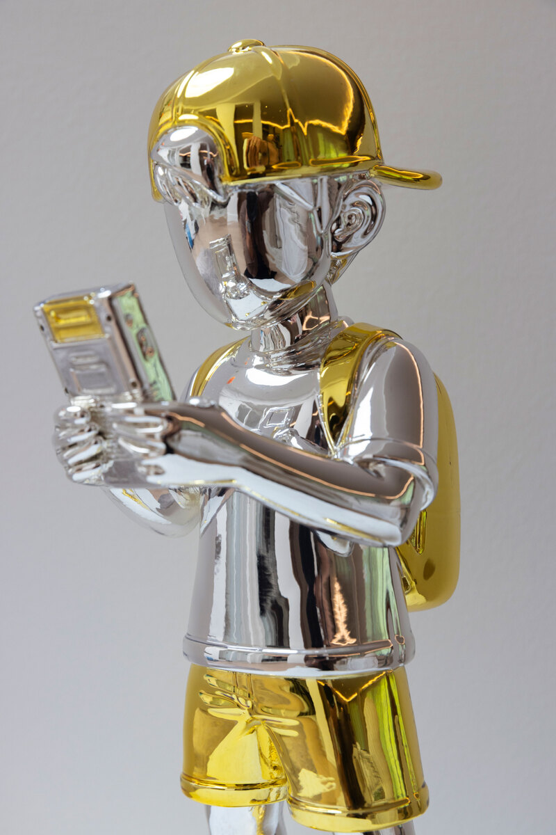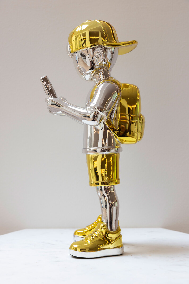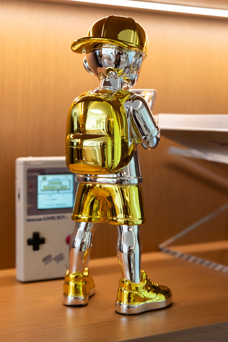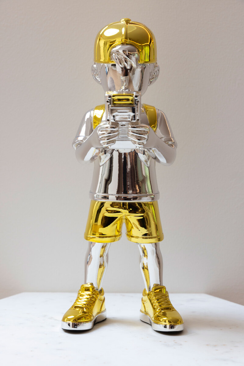 Before the world fit in your pocket, there was a device capable of transporting you to infinite worlds of possibility. You stared at it for hours, elbows braced and thumbs at the ready. Eyes locked. Time paused. The smell of mac & cheese filled the air and all that mattered was the next boss battle. Sometimes it worked. Sometimes you had to blow into the cartridge like a sacred ritual we all instinctively knew without being taught. You weren’t just playing. You were becoming. A heroic plumber. A daring pilot. A pixelated knight. And when the batteries died for the last time, so did a little piece of the magic — until now. This sculpture isn’t a toy. It’s a memory made solid. A monument to the first time you disappeared into wonder.