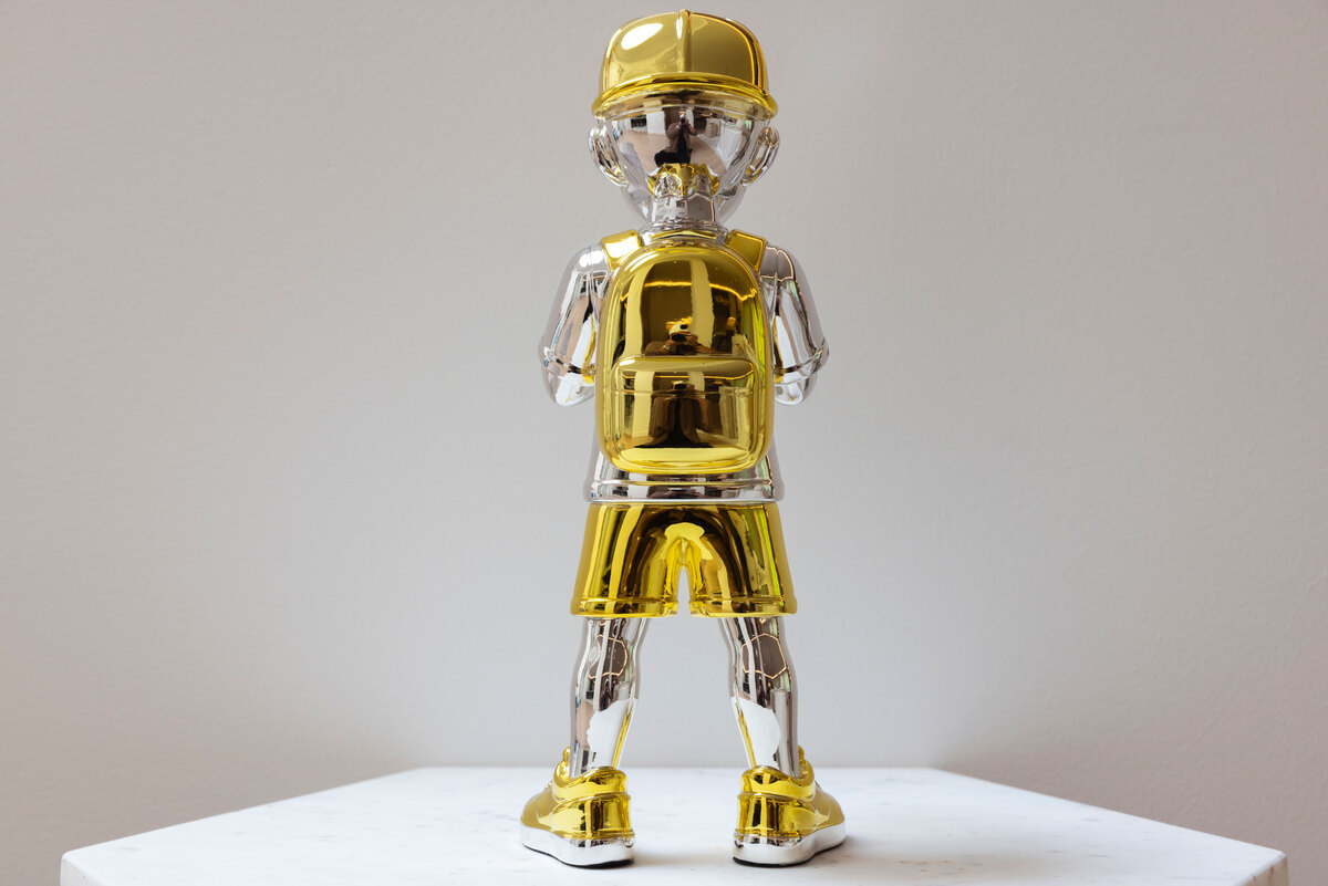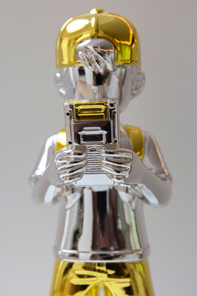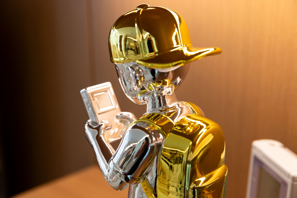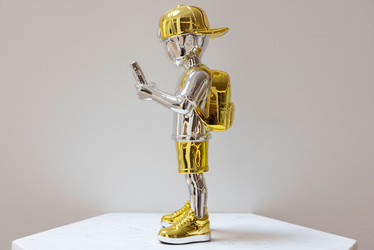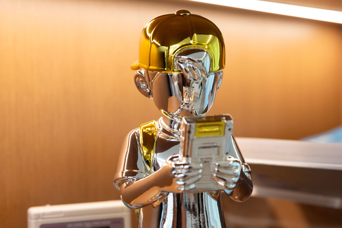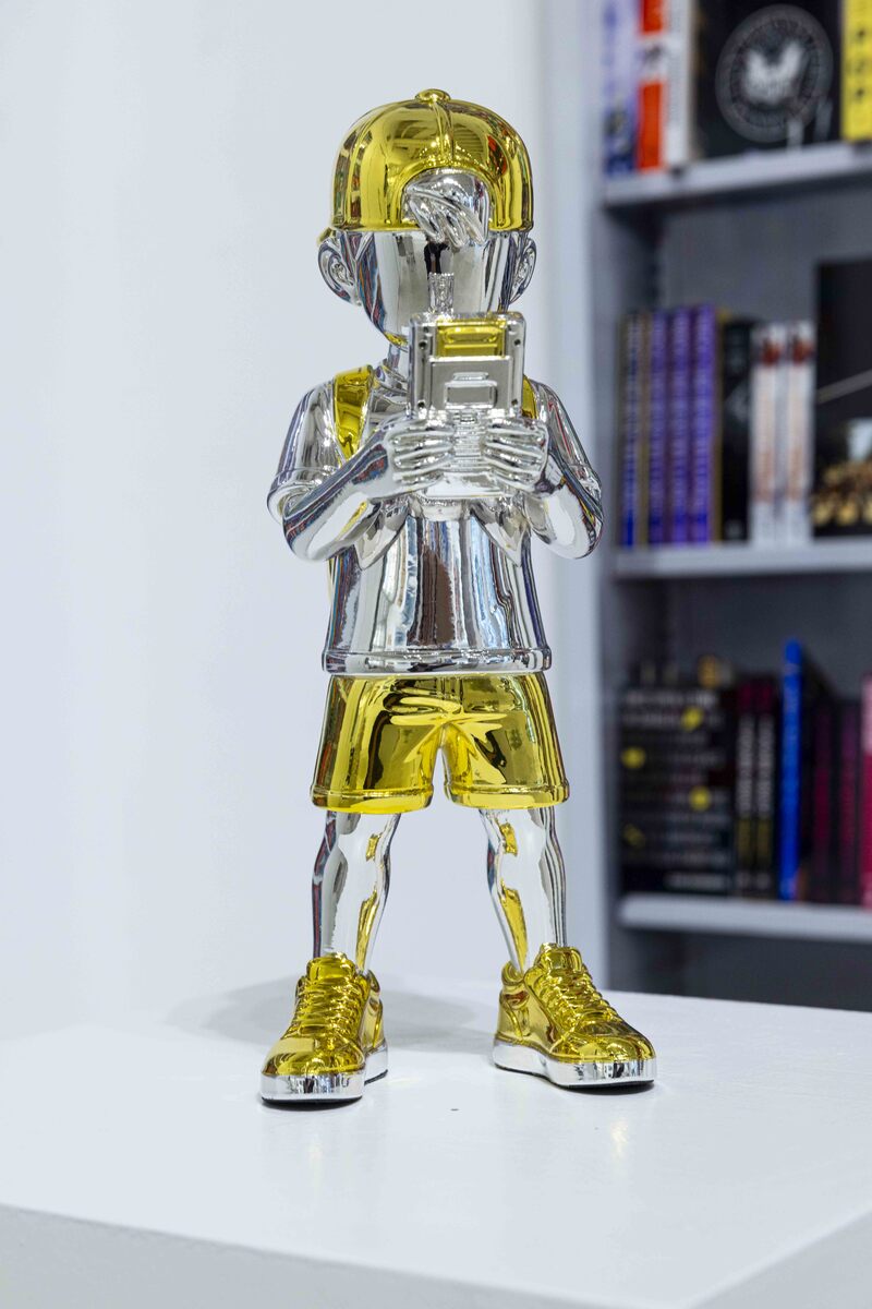 Before the world fit in your pocket, there was a device capable of transporting you to infinite worlds of possibility. You stared at it for hours, elbows braced and thumbs at the ready. Eyes locked. Time paused. The smell of mac & cheese filled the air and all that mattered was the next boss battle. Sometimes it worked. Sometimes you had to blow into the cartridge like a sacred ritual we all instinctively knew without being taught. You weren’t just playing. You were becoming. A heroic plumber. A daring pilot. A pixelated knight. And when the batteries died for the last time, so did a little piece of the magic — until now. This sculpture isn’t a toy. It’s a memory made solid. A monument to the first time you disappeared into wonder.